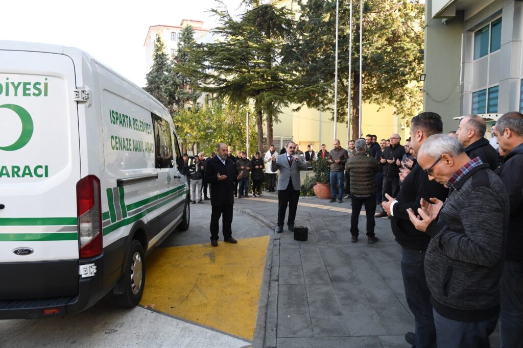 İsmail Tufan’ın cenazesi Isparta Belediyesi binası önüne getirilerek, mesai arkadaşlarından helallik alındı ve dua edildi.