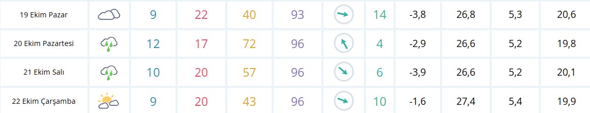 Pazar (19 Ekim 2025): Kısmen yağışlı ve bulutlu.