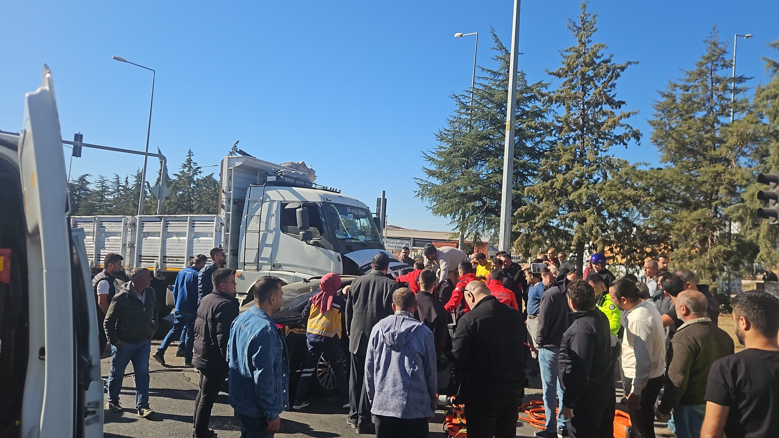 Bugün saat 12.00 civarında Isparta-Antalya yolunda, Bucak Devlet Hastanesi Kavşağı’nda seyir halindeki bir tır ile otomobil çarpıştı. Kaza sonucu otomobil sürücüsü araçta sıkıştı. Olay yerine sevk edilen 112 Acil Sağlık, itfaiye ve polis ekipleri, sürücüyü sıkıştığı yerden çıkarmak için müdahale etti. İtfaiyenin uzun uğraşları sonucu yaralı araçtan çıkarıldı ve hastaneye kaldırıldı. Yaralıların sağlık durumu hakkında detaylı bilgi verilmedi.