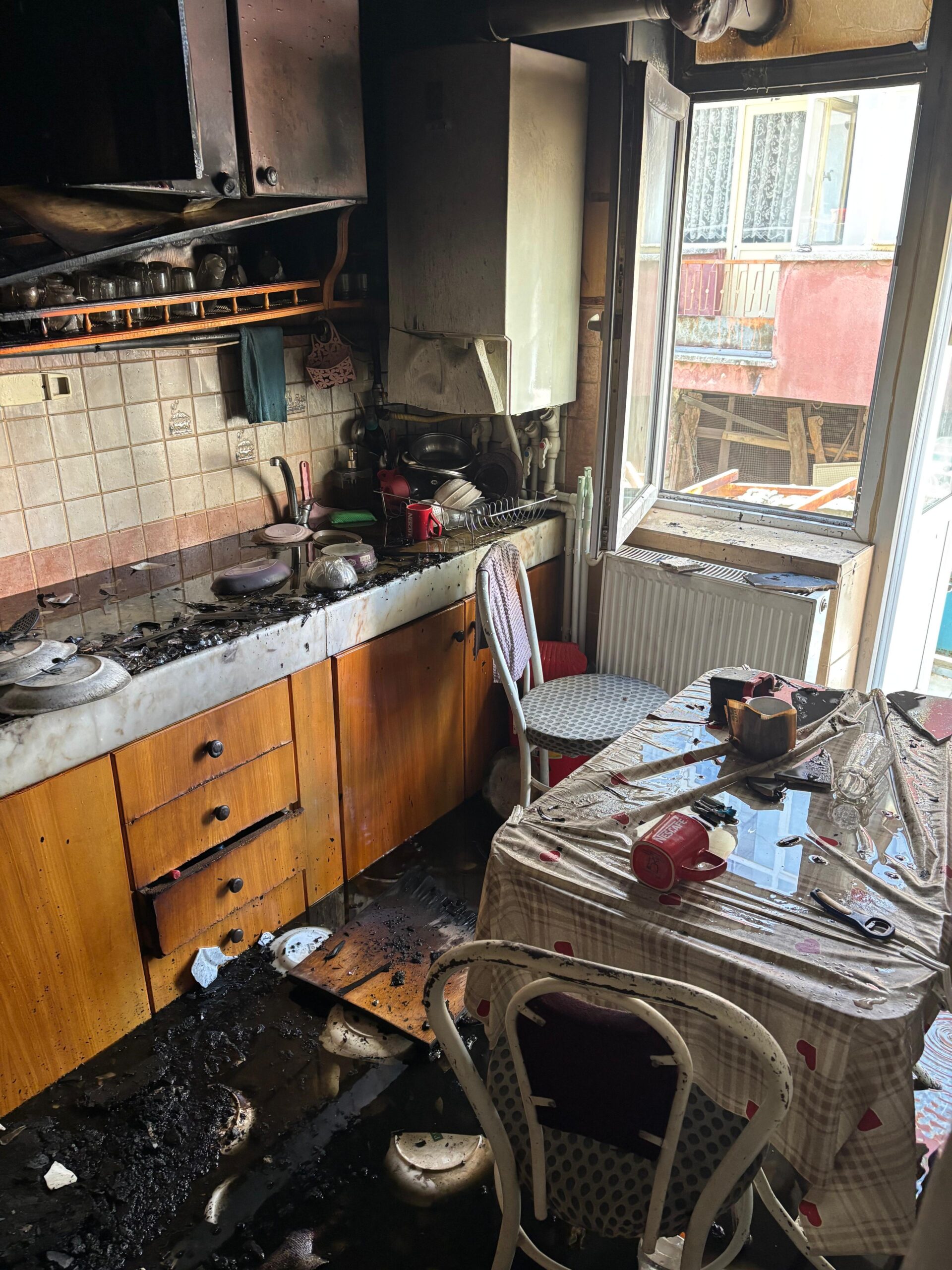 Yangında can kaybı ya da yaralanma yaşanmazken, mutfakta ciddi maddi hasar meydana geldi ve kullanılamaz hale geldi.