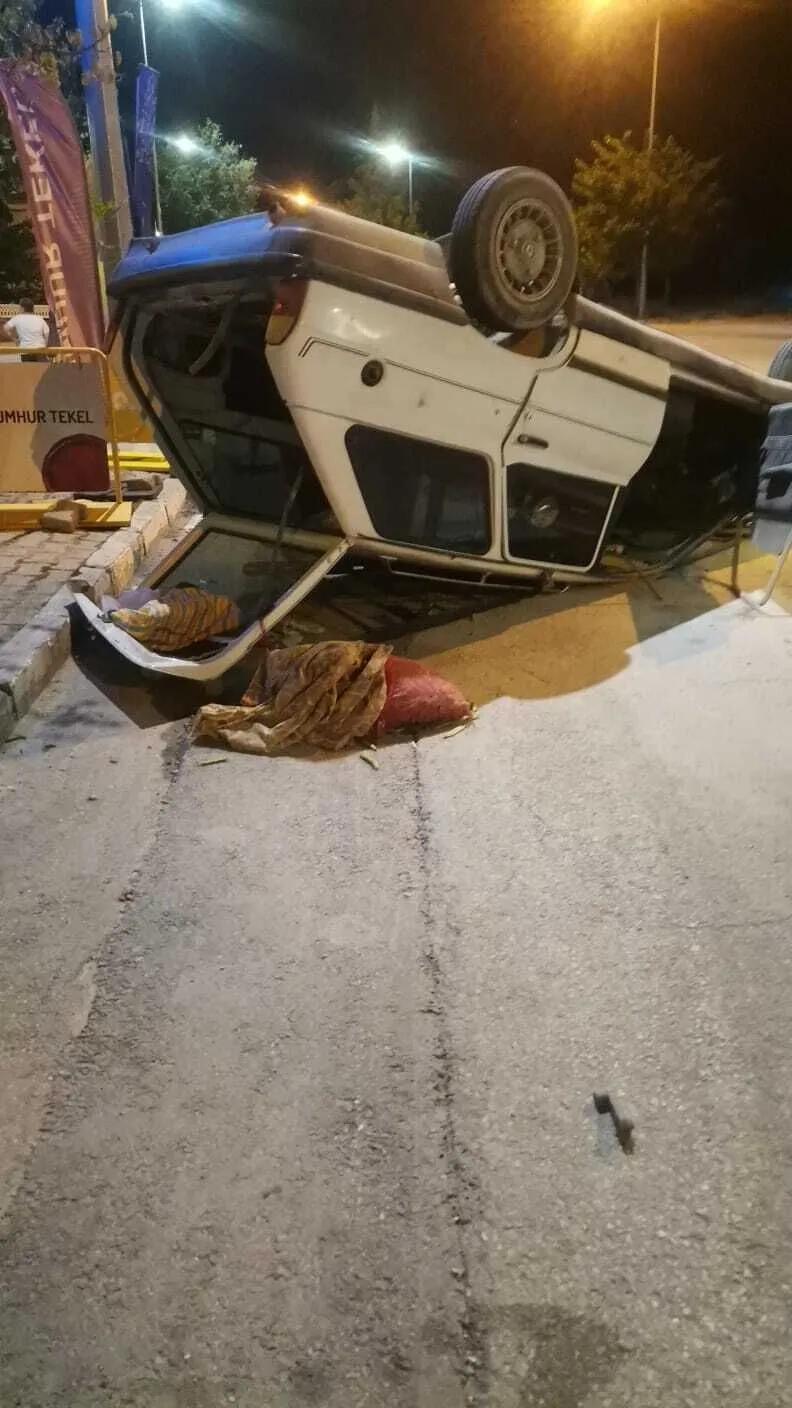 Isparta’da meydana gelen kazada, seyir halindeki bir otomobil kontrolden çıkarak takla attı.