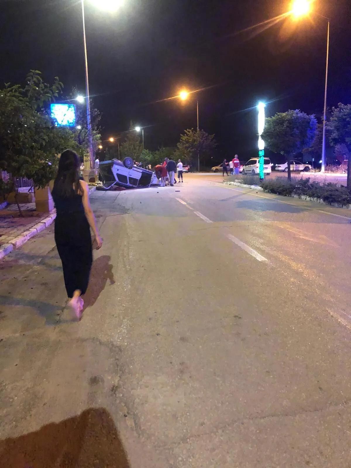 Isparta’da meydana gelen kazada, seyir halindeki bir otomobil kontrolden çıkarak takla attı.