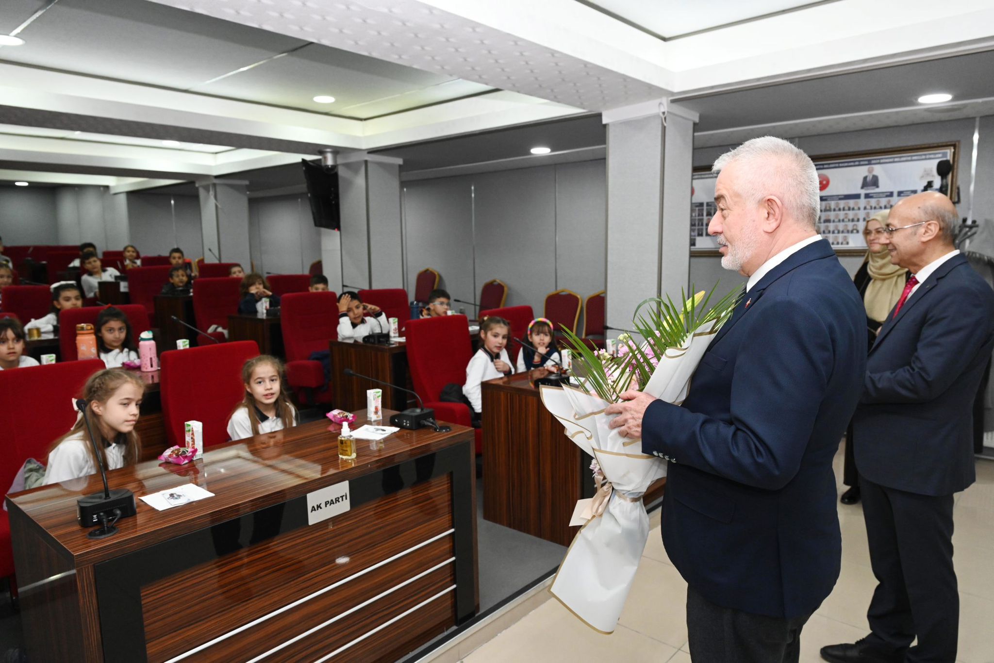 Öğrencileri meclis salonunda ağırlayan Başkan Başdeğirmen, “Gözlerinizdeki ışıltıyı görünce mutlu oluyoruz. Gelecekte ülkemiz sizlere emanet olacak. Hem yerel hem genel yönetimlerde önemli görevler üstleneceksiniz” dedi. Belediye meclis salonunun şehrin gelişimine yönelik kararların alındığı yer olduğunu vurgulayan Başdeğirmen, meclis üyelerinin seçimle göreve geldiğini ve burada düzenli olarak toplantılar yapıldığını anlattı.