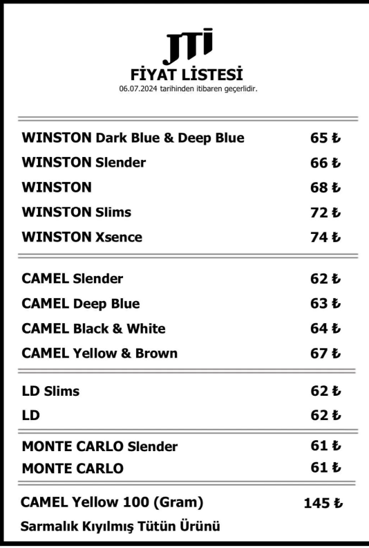 ÖTV indirimi sonrasında tütün mamulleri firmaları da fiyat güncellemelerini yaparak yeni fiyat listelerini marketler ve tekel bayilerle paylaştı. JTI grubu da güncellenen fiyat listesinde tiryakilere yönelik indirimi yansıttı.