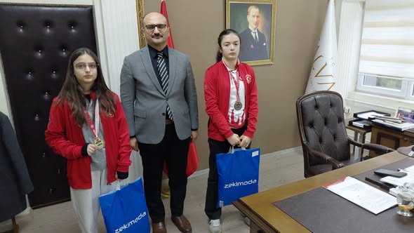 alvaç Kaymakamı Bekir Abacı, ulusal ve uluslararası düzeyde düzenlenen yarışmalarda derece elde eden öğrencileri makamında kabul etti.