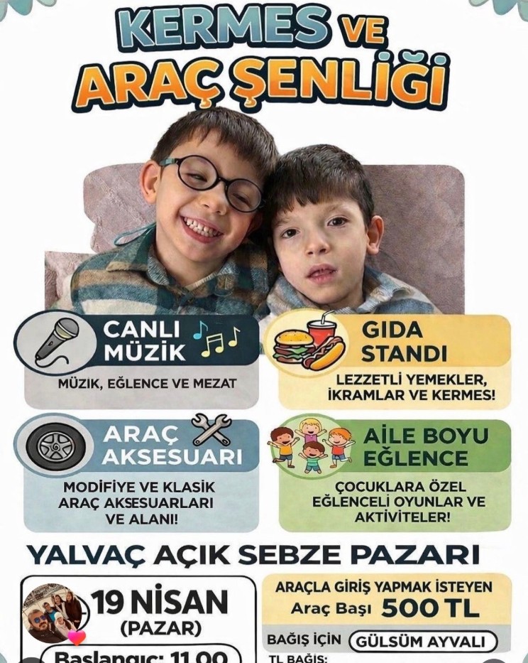 Yalvaç’ta sosyal dayanışmayı güçlendirmek amacıyla düzenlenecek “Kermes ve Araç Şenliği”, 19 Nisan Pazar günü vatandaşları bir araya getirecek. Etkinlik, Yalvaç Açık Sebze Pazarı alanında gerçekleştirilecek.